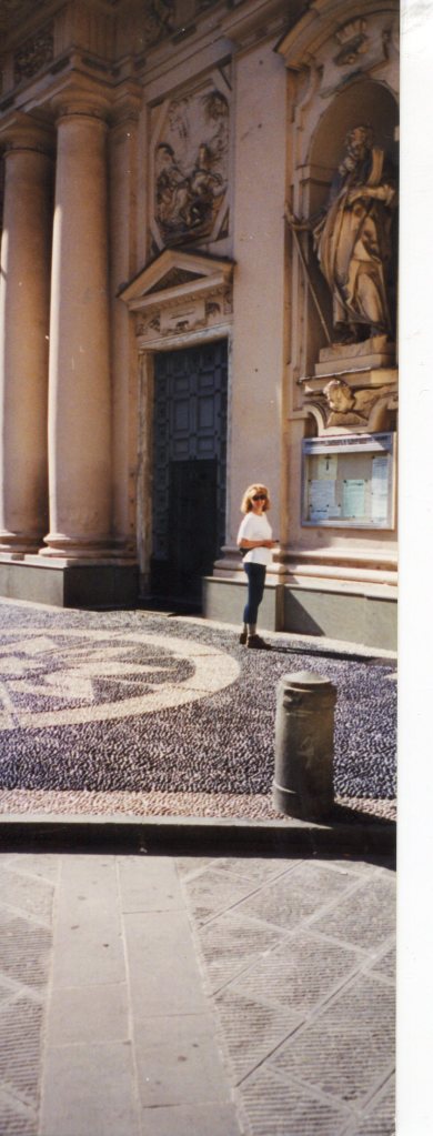 We arrive at the Milano airport, where we clean up and hairspray, hairspray, hairspray! (Unfortunately, Lene leaves hers in the bathroom…much discussion of this throughout the trip.) We drive into Milan with a silver-tongued taxi driver who wants fifty dollars American and almost runs out of gas on the outskirts of town. Much commotion! Once in the train station, it is disconcerting to find that no-one speaks English! We finally find our train and settle for the ride, by which time we are exhausted.