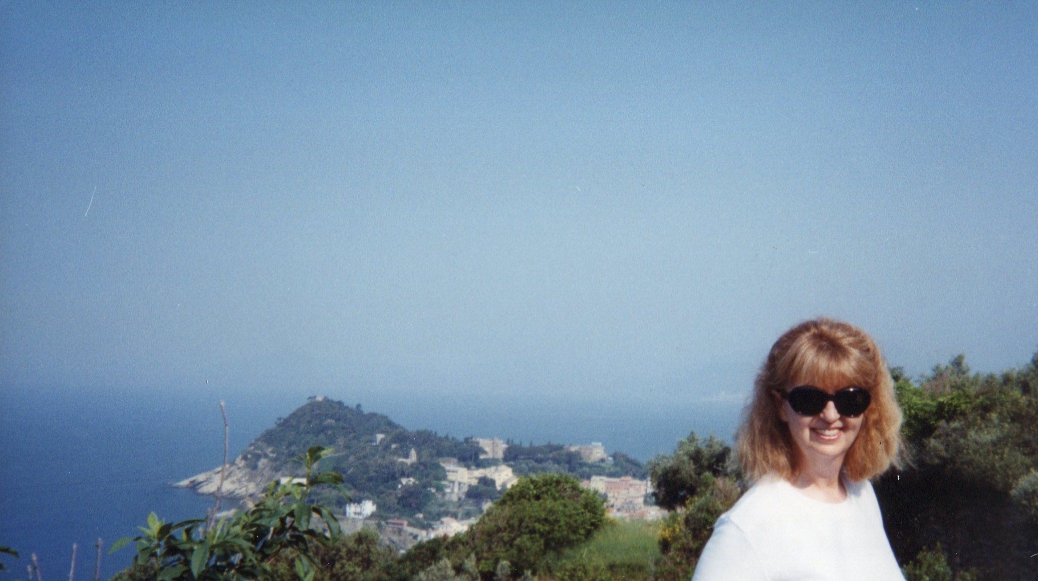 We reach Manarola, and Mario pulls us into a tiny villa where an old Italian woman is making homemade wine. She pours out a glassful, and we pass it around, each taking a sip. Mario buys a bottle to take with us on a picnic. Walking on to Corniglia, we have a delicious lunch, then it’s back to the hotel for a rest.