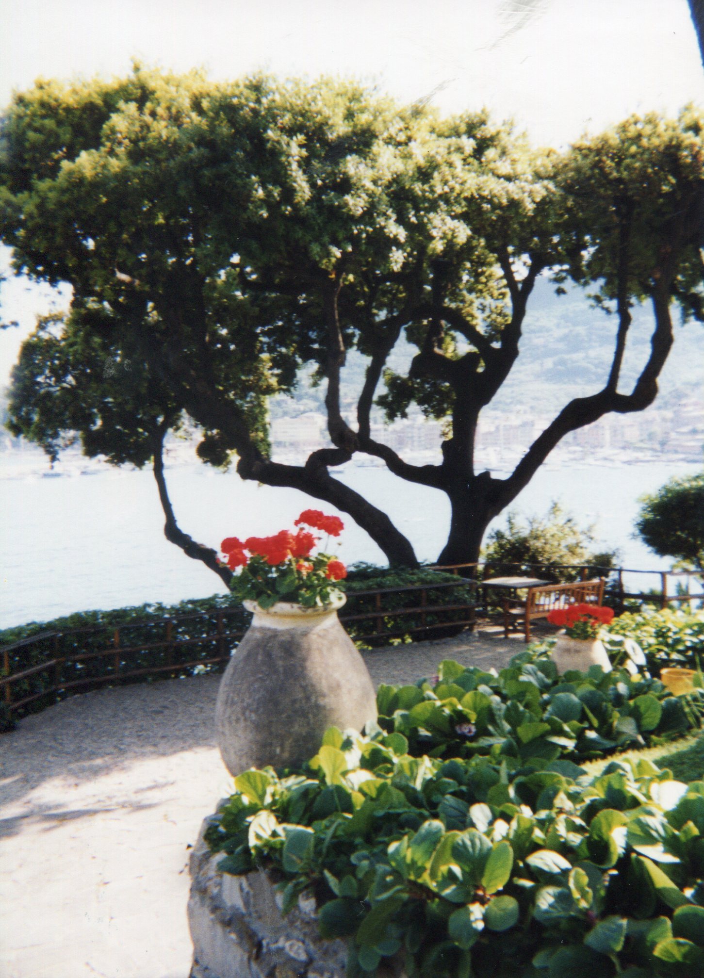 The crystal emerald clear water- the immense terra cotta pots of red geraniums – the white sailboats floating on the Meditteranean – the jewel-green mountains surrounding us – the manicured gardens….words fail to describe it all.