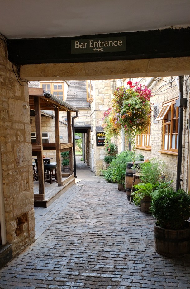The High Street is filled with delightful shops, pubs, inns, and teashops. After window shopping and a brisk stroll, I stopped in the Noel Arms for a half pint of Guinness (or two!) And after an interval on Facebook, I then actually found my way home – noticing at this point a black kettle hung above the door of my little enclave.  Ah well…. After a light supper and some English TV, I went to bed, listening to the church bells and thinking: I am in England for sure.