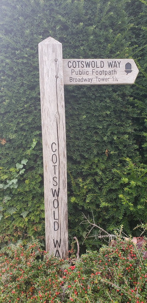 I did find one sign pointing me to one part of the Way through the fields, which I followed for about 45 minutes. When I finally came to the conclusion this was not the Cotswolds Way stretch that David and I had walked in 2017, I thought it the better part of valor to turn back and get a half pint – again, at the Lygon Arms.