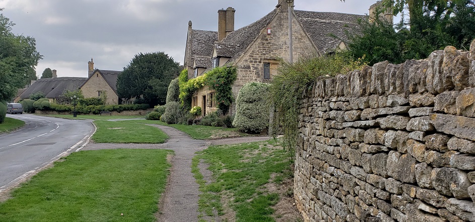 The first thing I wanted to do was walk the Snowshill Road from Broadway past Old Orchard, where David and I had stayed a year ago. The weather had cleared, and it was cool and fresh walking. Lovely!