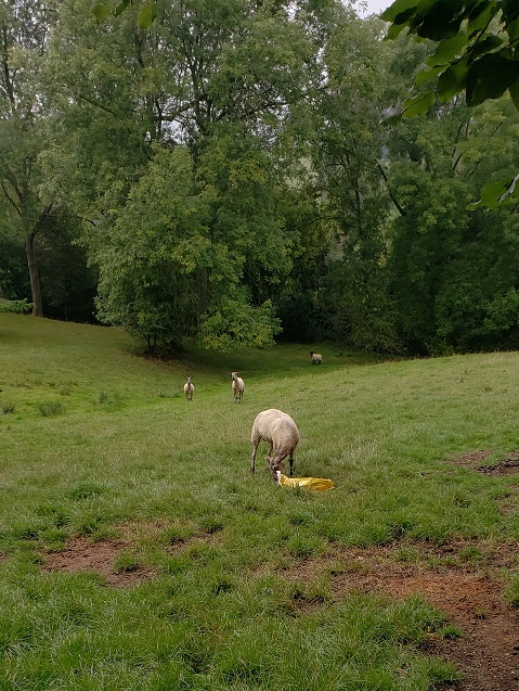 I did find one sign pointing me to one part of the Way through the fields, which I followed for about 45 minutes. When I finally came to the conclusion this was not the Cotswolds Way stretch that David and I had walked in 2017, I thought it the better part of valor to turn back and get a half pint – again, at the Lygon Arms.