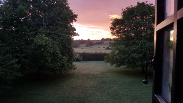 Once I woke early to sunrise over the fields filled with sheep; so beautiful to see the colors of grass and trees deepen and glow.