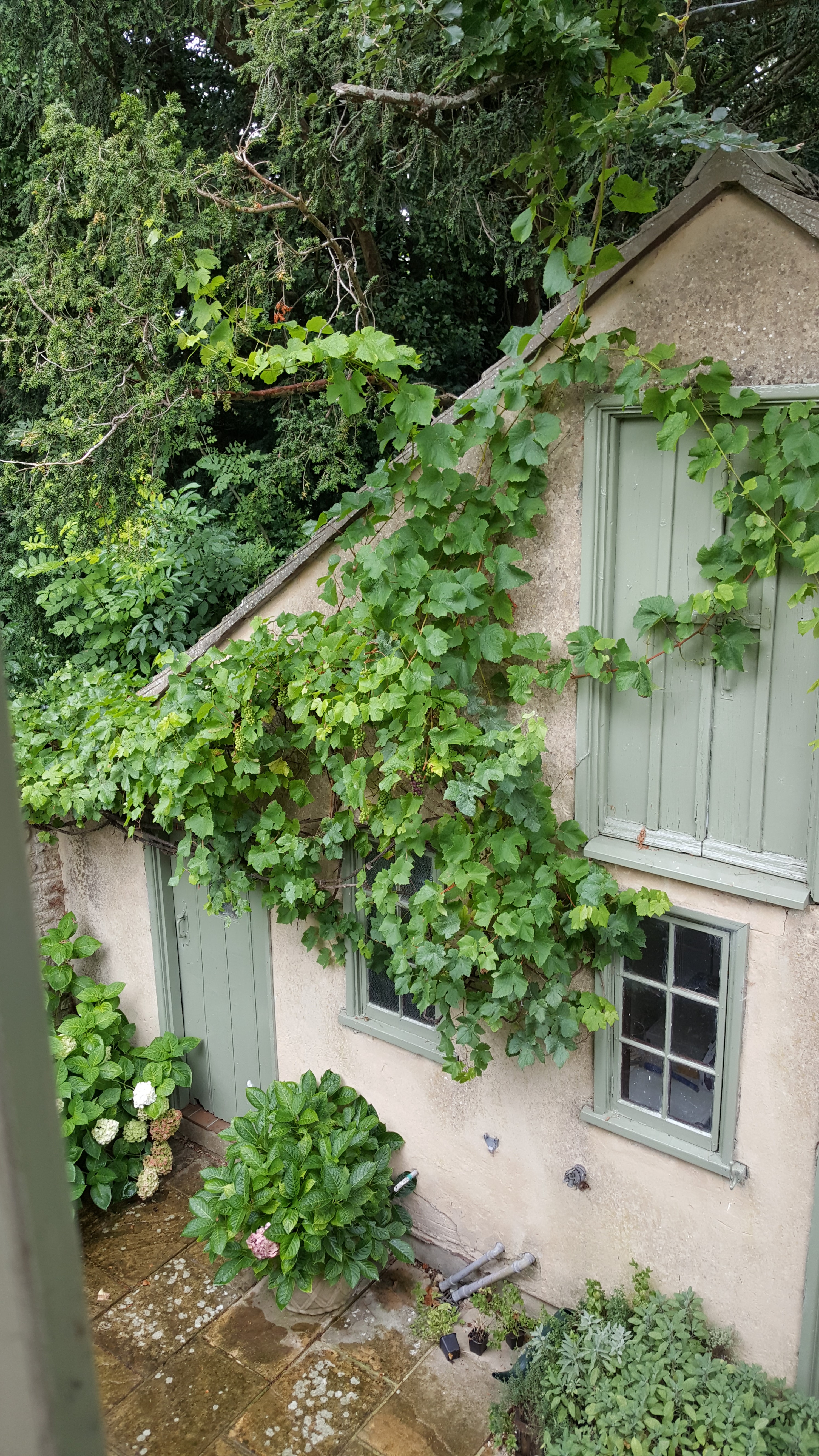 …apples, plums, pears and a grape arbor, with the veggie garden offering green runner beans which were wonderful.