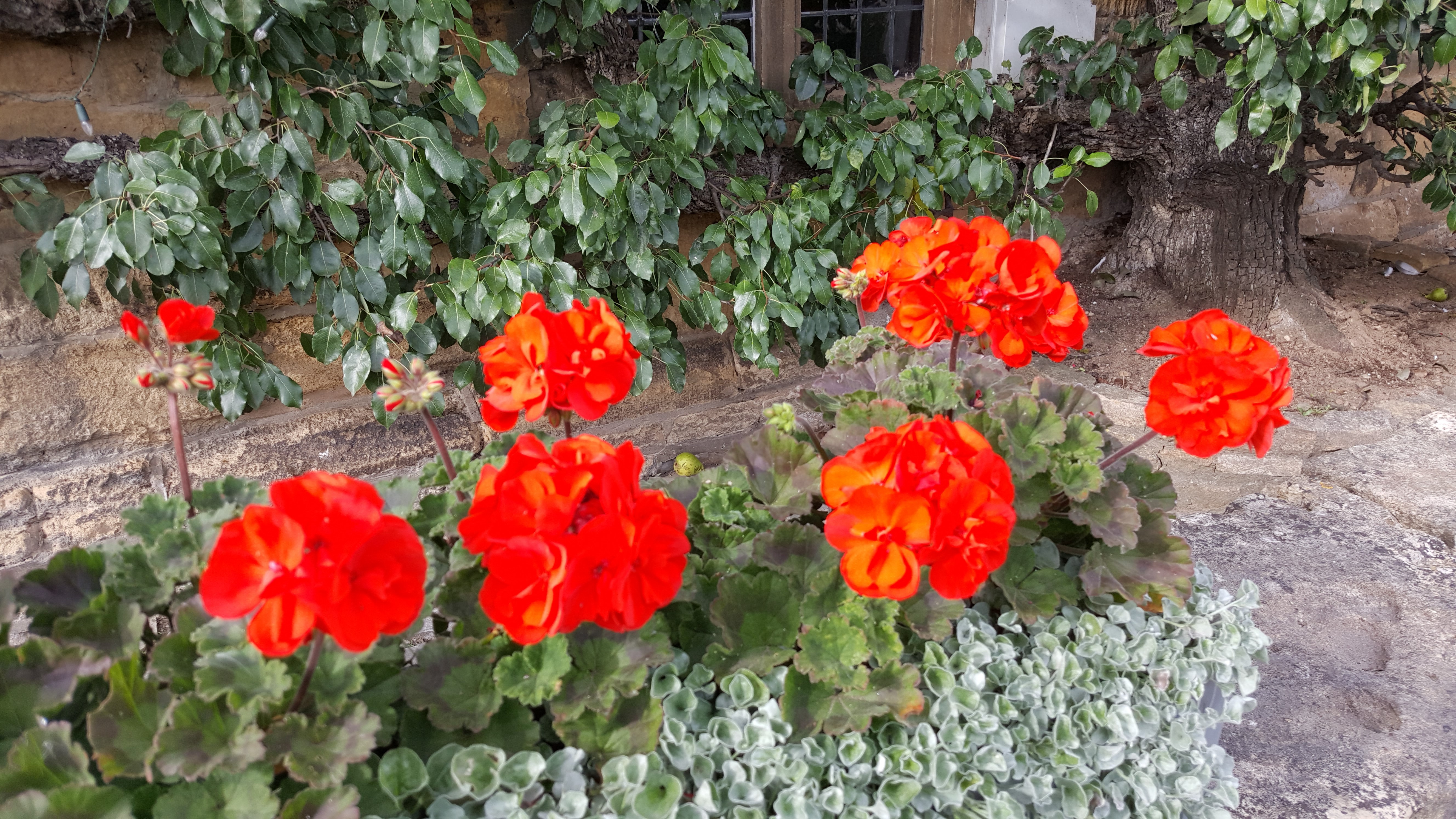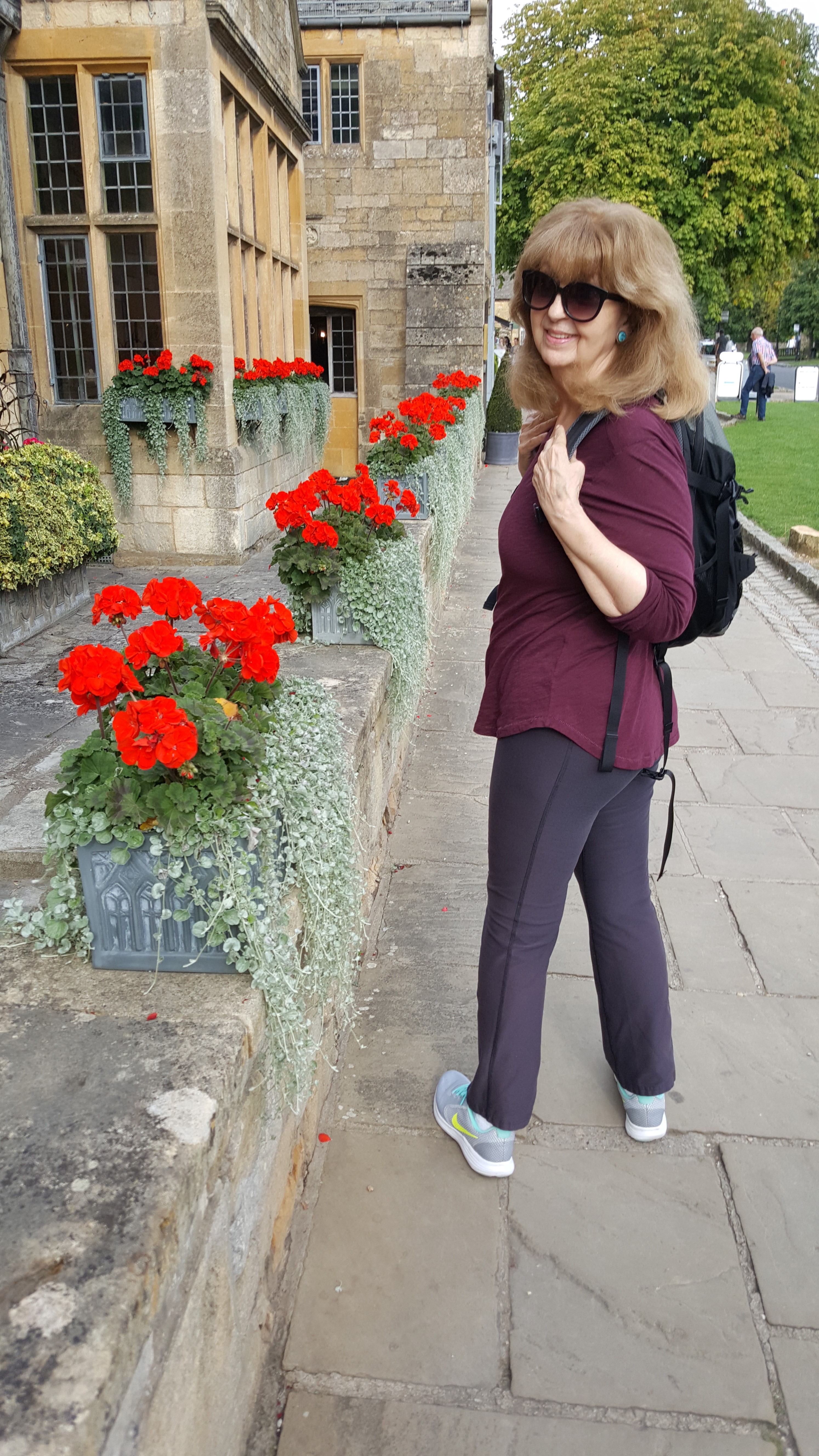 The flowers were in full bloom, and were brilliant – as that part of the street lined with pots of the most vivid red geraniums attested. We were fascinated by the architecture, which used mostly Cotswolds stone that gives off that buttery glow even when the sun isn’t shining. I don’t care if it is “tourist-y” – I love it!