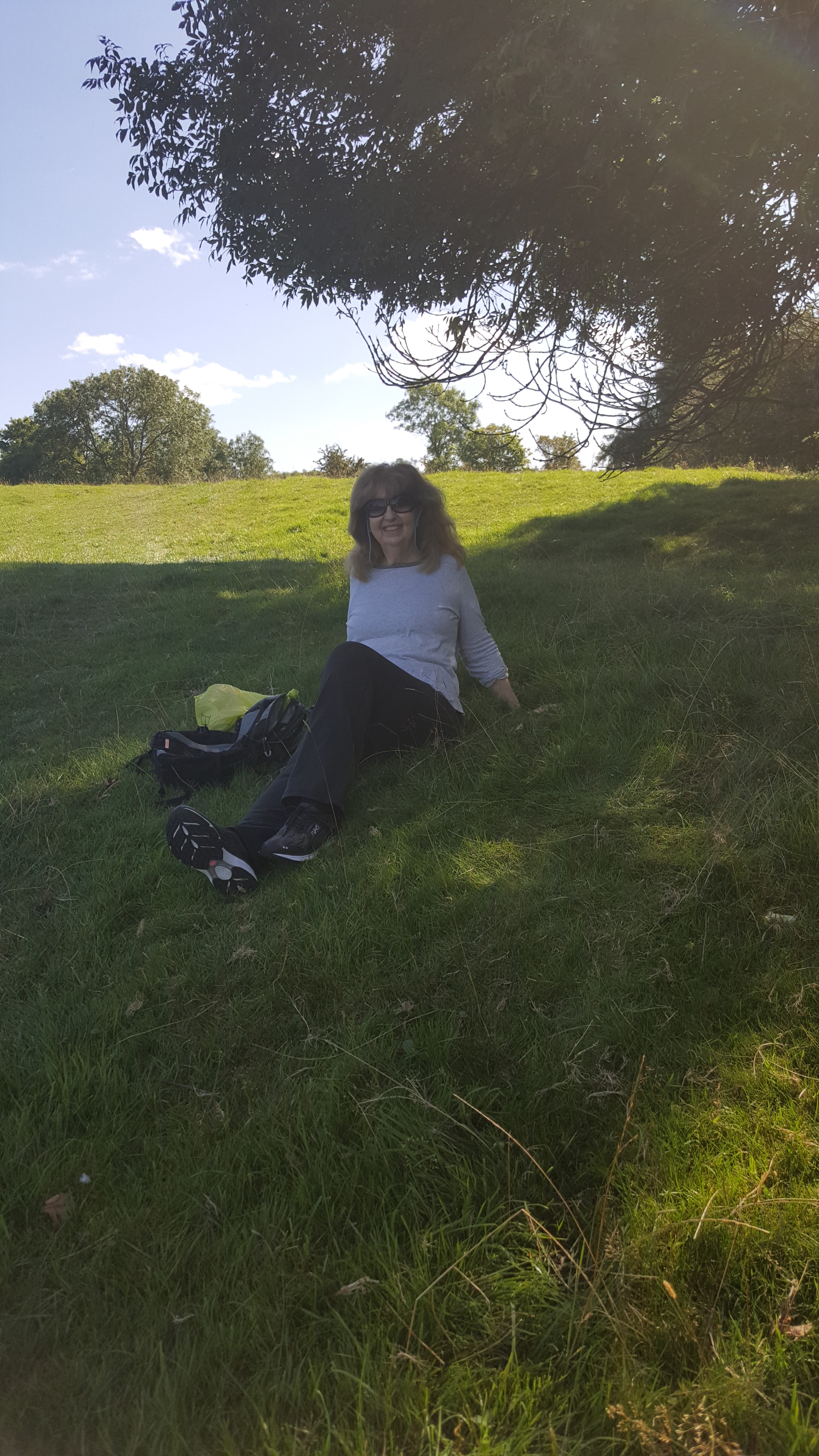 (Obviously not dancing here!) I pulled myself together, and walked over the crest of the hill behind us to see how far it was to the Broadway Tower. It was at least another mile away, and as I was unsure as to David’s desire to walk any further, we packed up and trotted back down to Broadway.