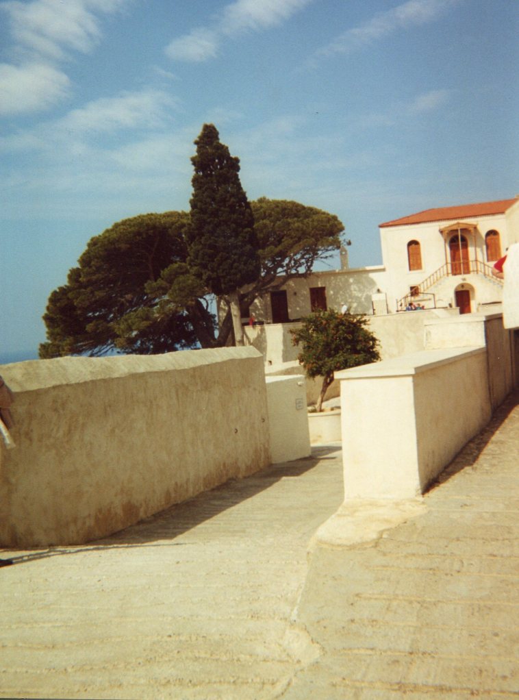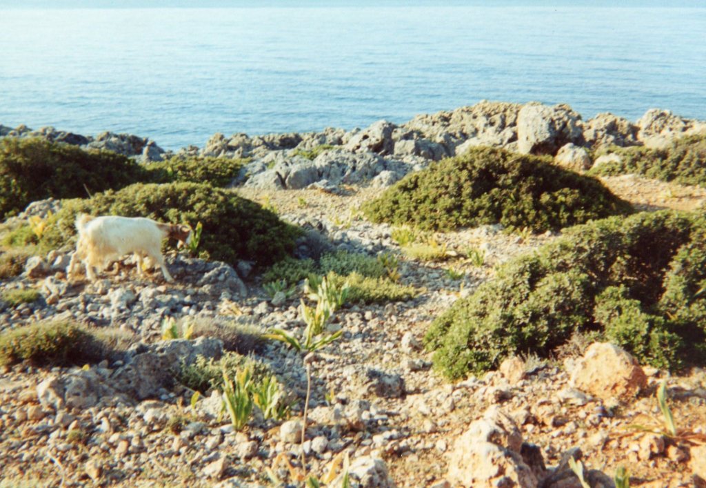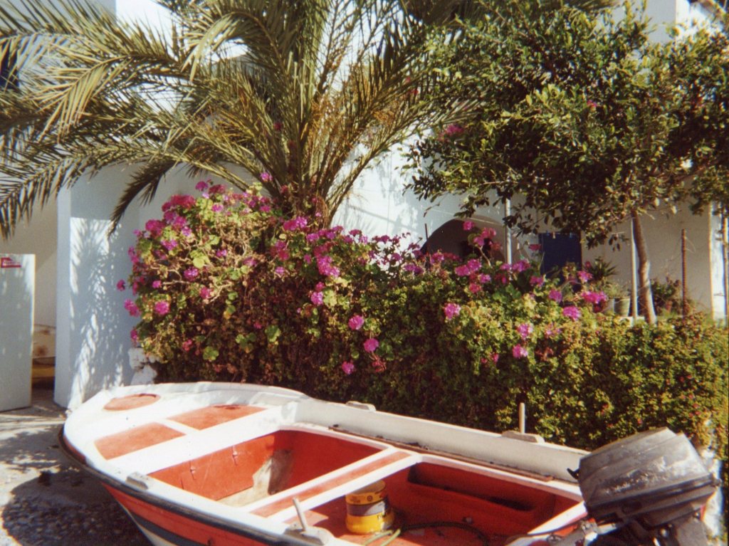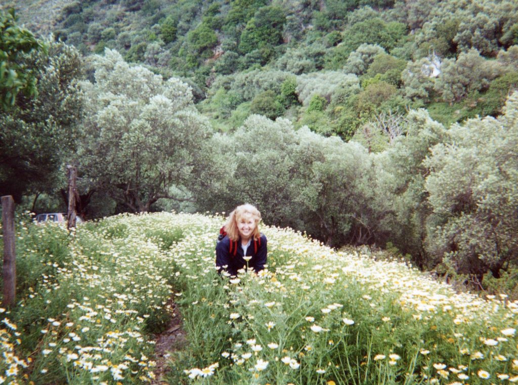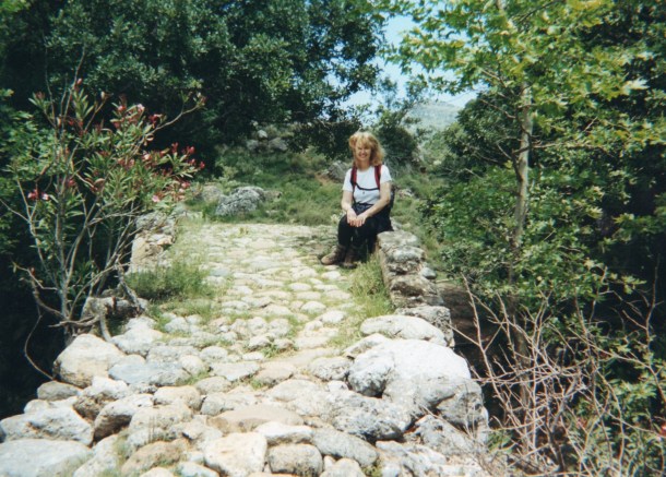Our first glimpse of Loutro is of a heavenly small port on the Libyan sea coast, its buildings whitewashed and edged with the vivid blue shutters of Greece – all facing the water. Our hotel, the Sitis, is at the far edge of the tiny waterfront. It is hard to describe my feelings on first seeing Loutro: it is all I had hoped Greece and Crete would be.