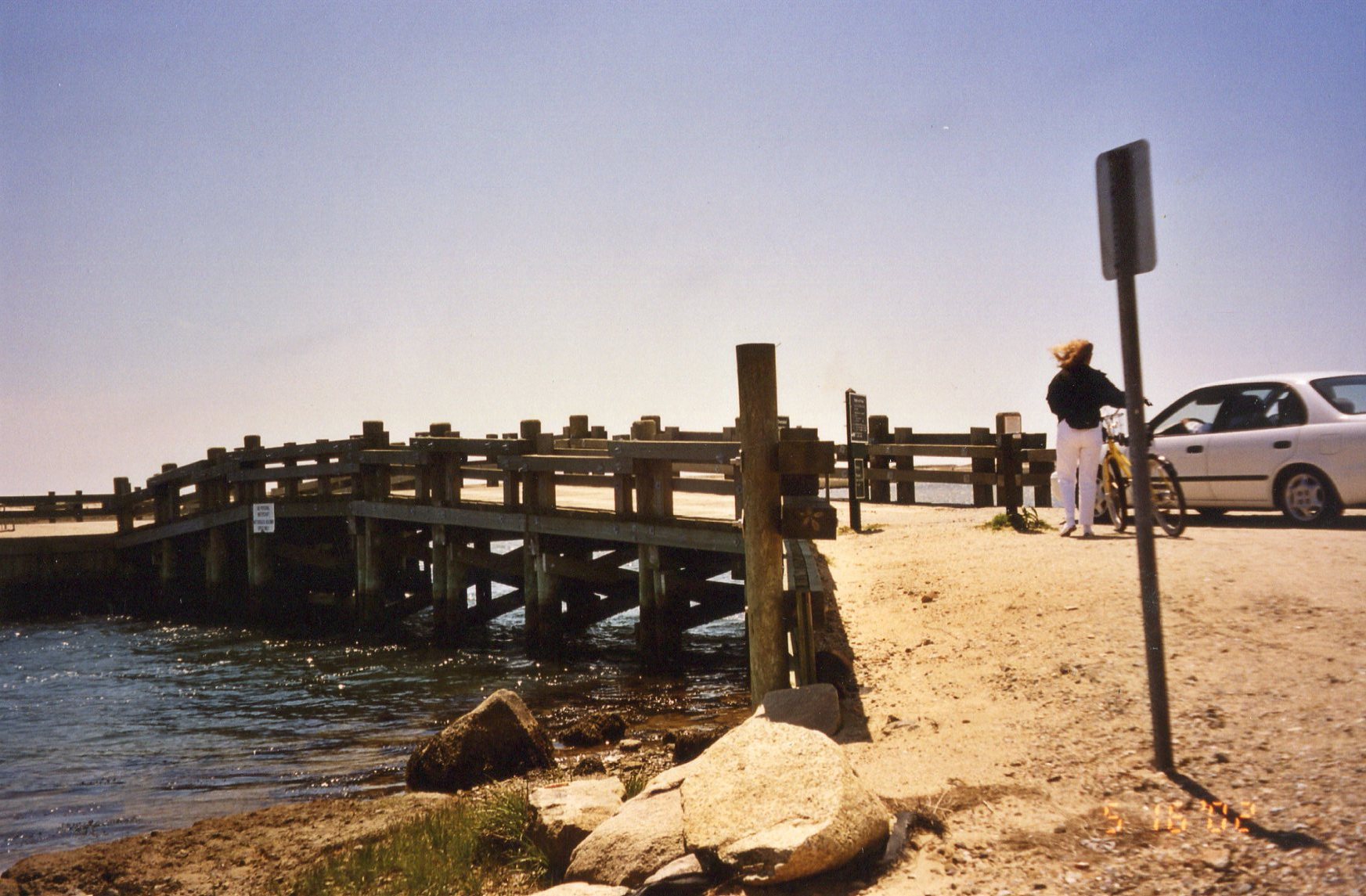 The On Time ferry to Chappaquiddick was $3 (round trip) and took all of two seconds to get there. On arrival, we set off down a paved road, and then the island quickly became wild and lonely. It took us about an hour to get to The Bridge. Along the way, we passed small woods with two-story clapboard houses, grey-cedar shingled, dotted here and there.