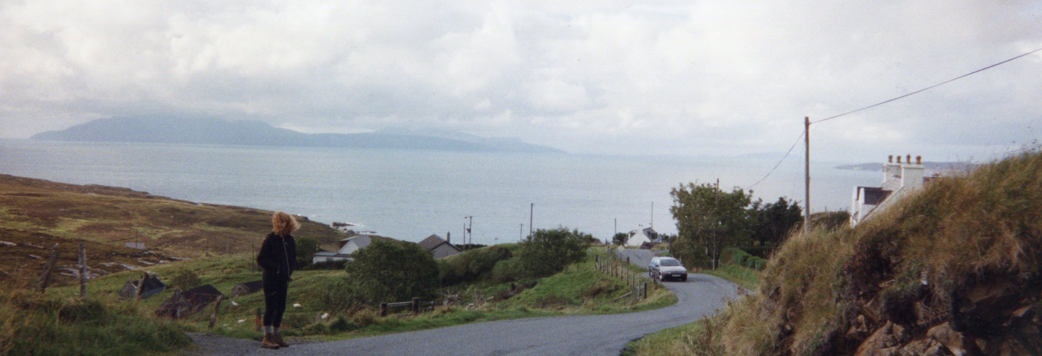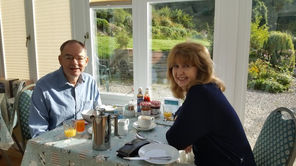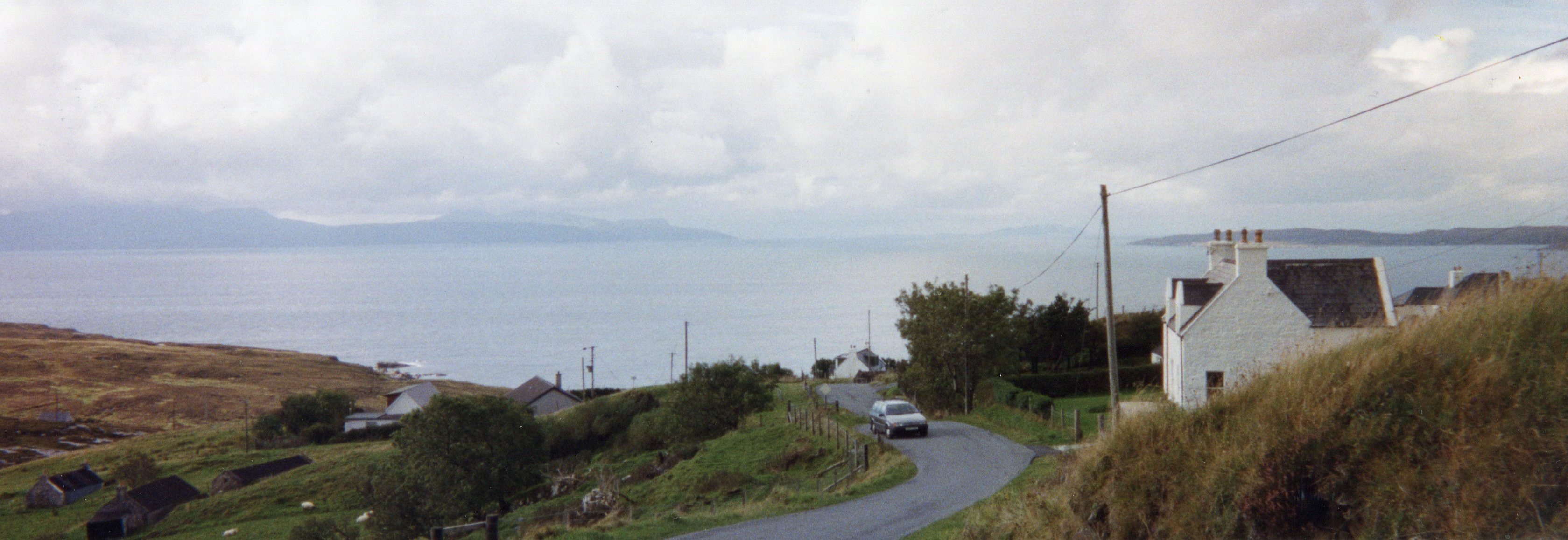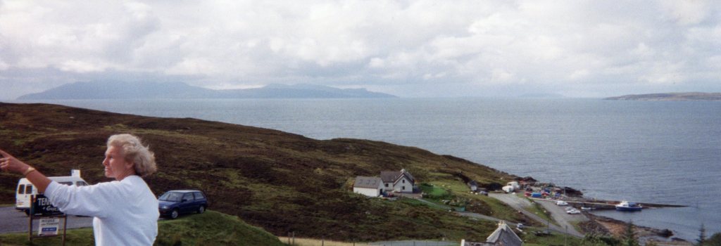 Susan and I had planned the night before to get up at the crack of dawn and go for an hour’s walk before we are due to leave Skye. At 6:30 AM I crawled out of bed (well, okay, that’s the crack of dawn to me!), got dressed and met her outside my cottage. It was a lovely morning – hard to believe, as the worst gale to hit Scotland in 30 years was forecast! We walked down the quiet country lanes, enjoying the peace and circling the Inn- an altogether enjoyable ramble, getting back in time for a quick breakfast and then it was into the vans.