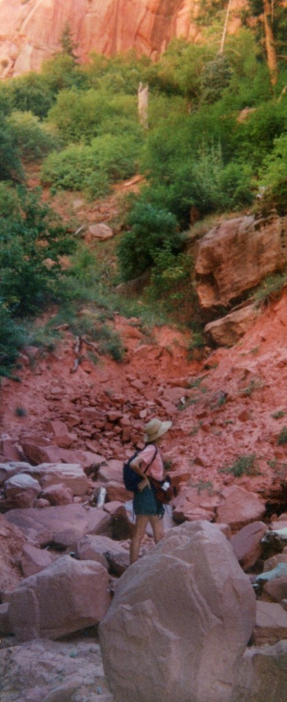 I stopped short, tripped and almost came nose to nose with the rattler…who providentially for me, slithered off into the scree.