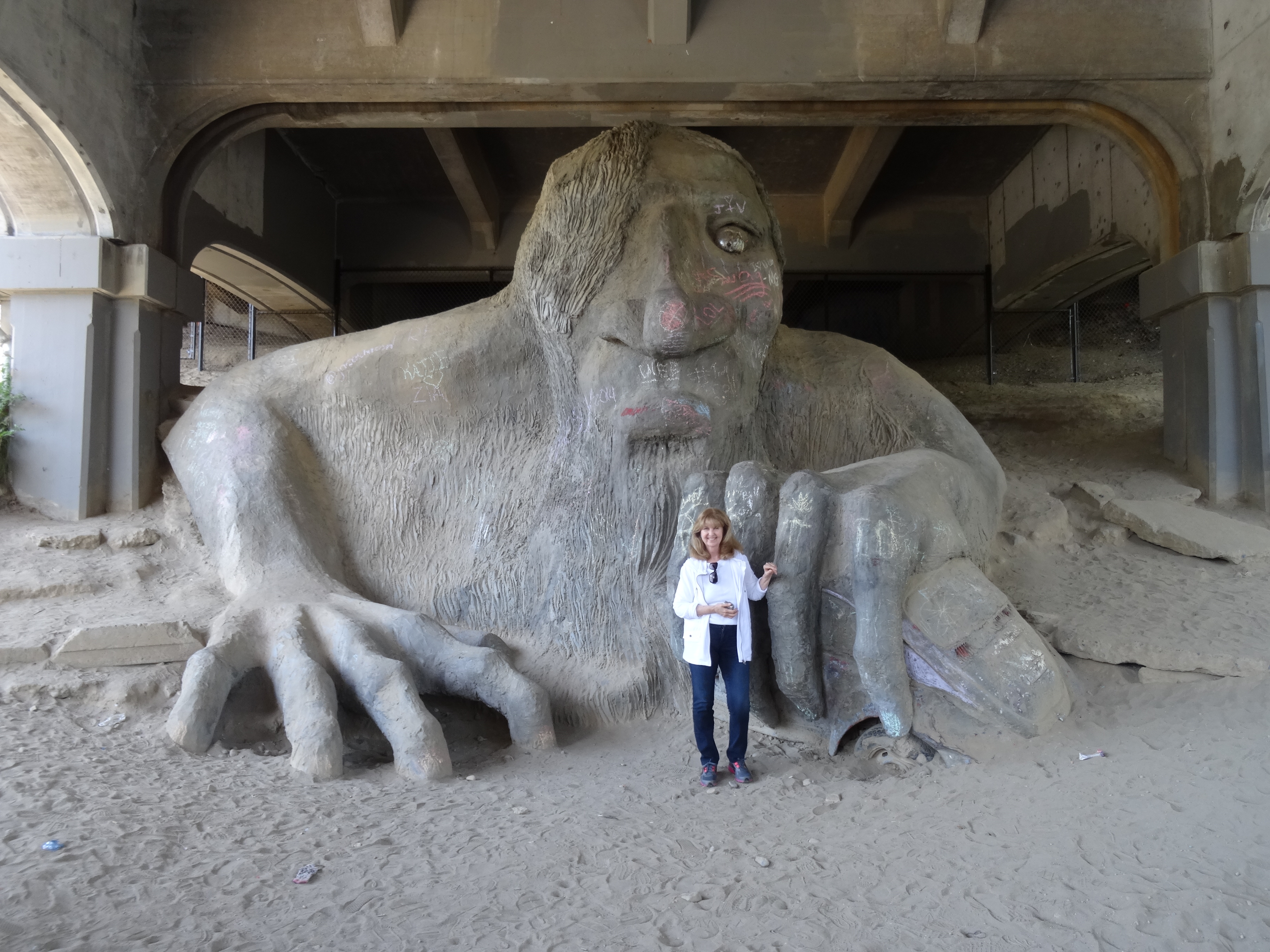 So here we were at The Bridge. As I was leaning the bike against the heavy, heavy wood railings and saying (sotto voce) to the wind: “I can’t see how the car went through these things,” a man bicycling by said, as he sailed past: “They weren’t there then.” Eerie.