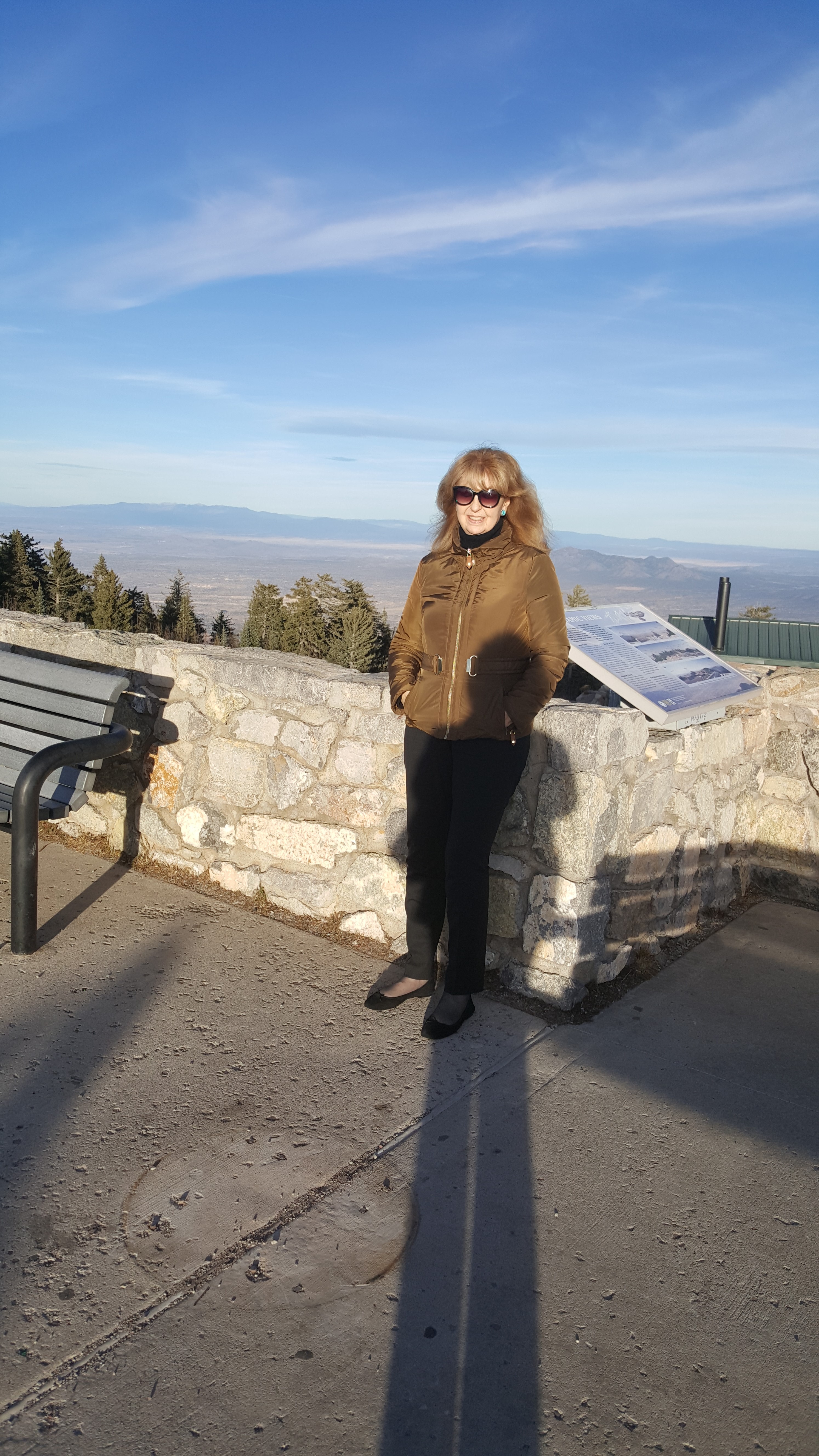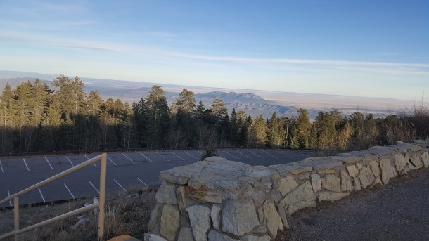 Once we summited and parked, the next big challenge was opening the car door! The wind factor was “only” 18 mph” but it felt like 100… Lesley had to hang onto the door handle while I exited.