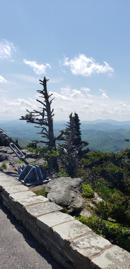 Our first stop of the day was an English café called Eat Crow – we had English pasties, and I bought a bumbleberry pie for that night’s dessert. I had never tasted one before. It was delish!! From there, we took a circuitous route up Grandfather Mountain, stopping at various outlooks on the way to the summit. Glorious!!!
