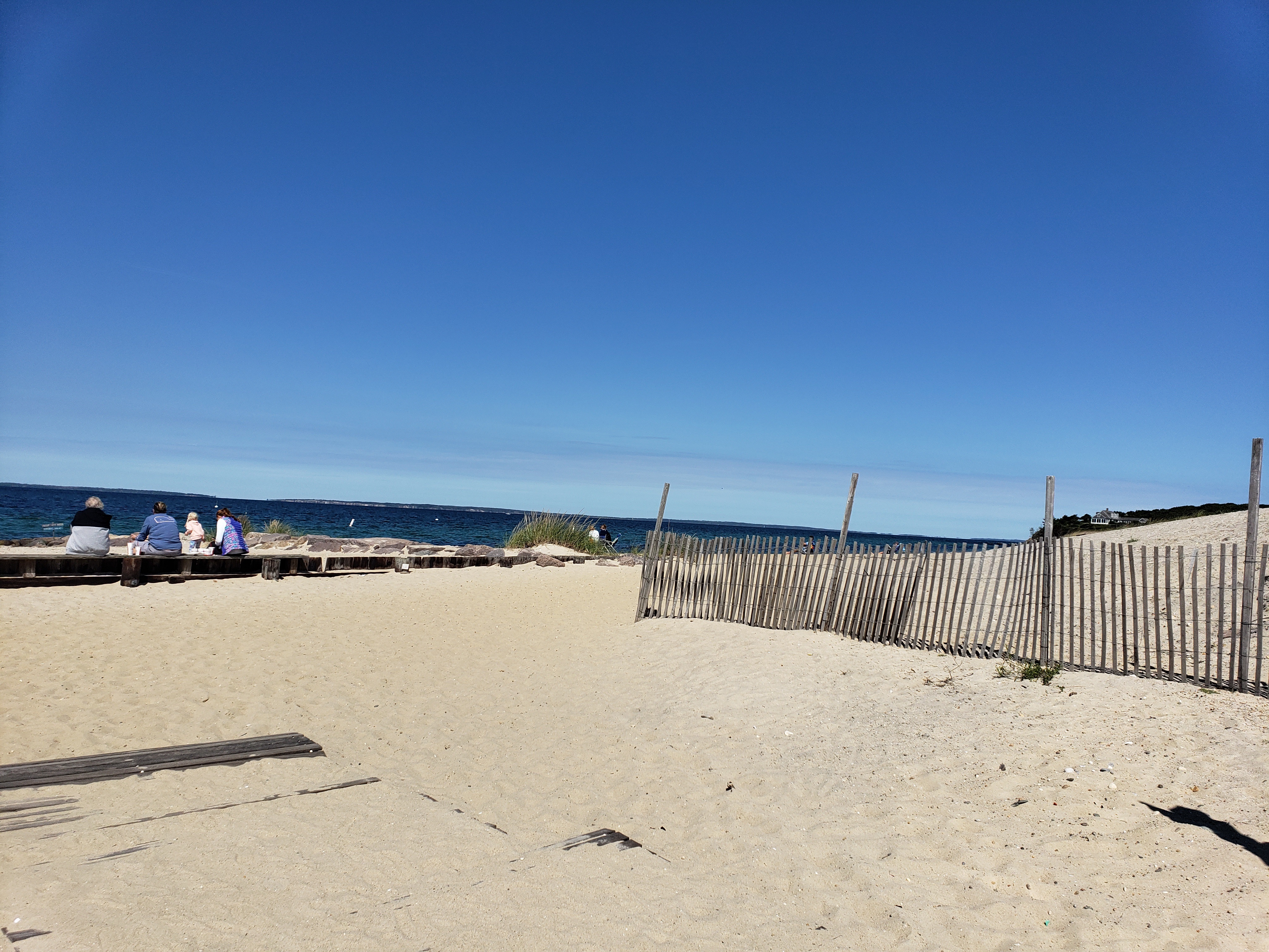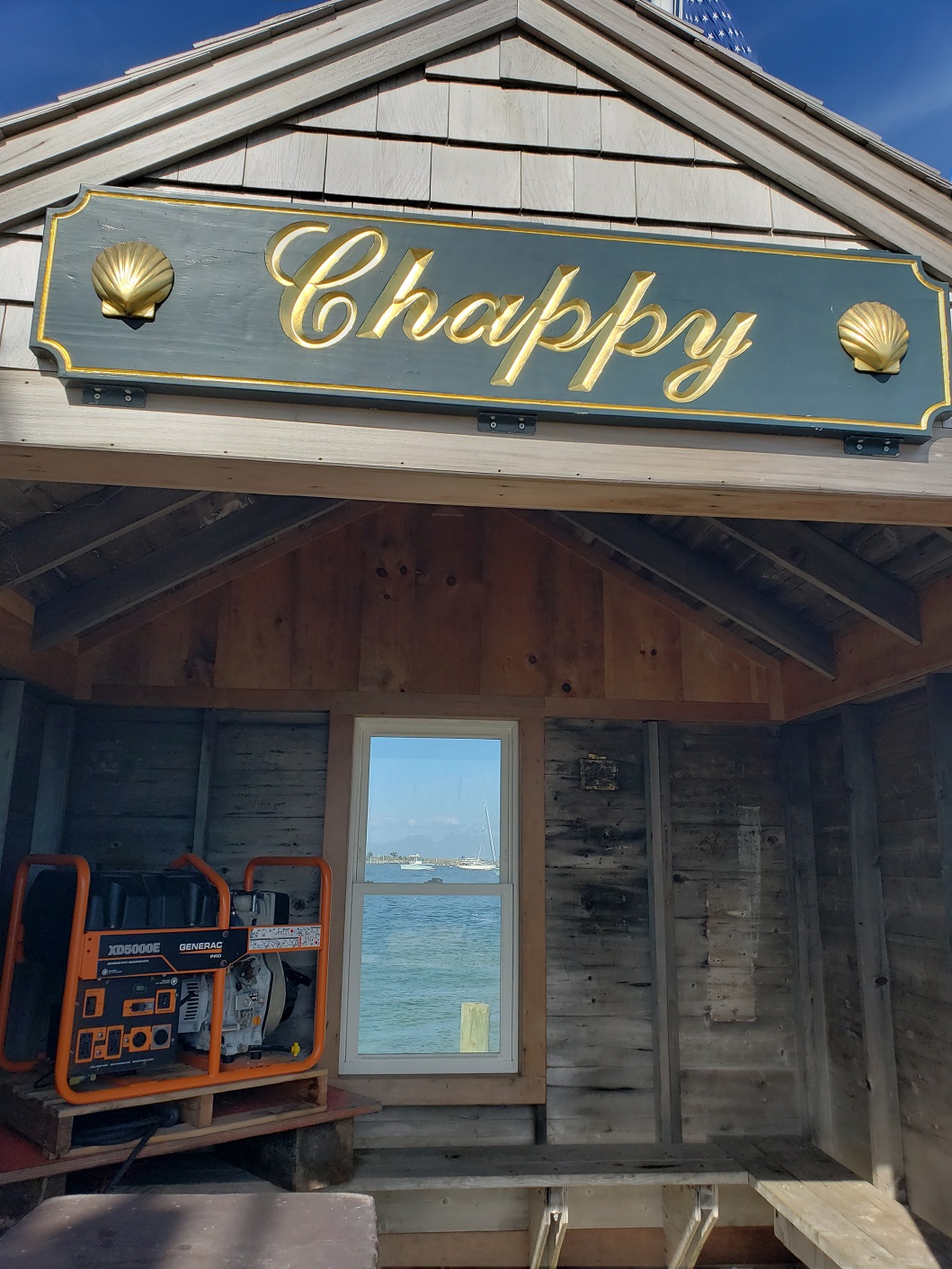 When we’d drunk our fill of the beauty, we wandered down to the beach along the deserted sand, until the sea surrounded us. Then it was back to town to check out the ferry for Chappaquiddick, and lunch! The balcony of The Sand Bar overlooked the main street. The menu: clam chowder, fresh shrimp, bloody marys. The air was bell-clear, and the sky a brilliant blue, with a fresh breeze blowing through the town.