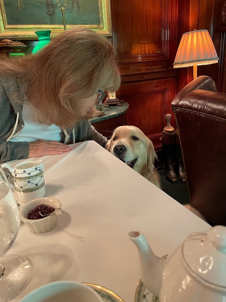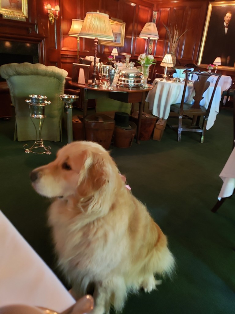 We drove to Boone for breakfast at a farm-to-table restaurant, where we sat on the café’s deck and kicked back. Allie, Lesley’s beautiful Golden Doodle, joined us, good as – well – gold.