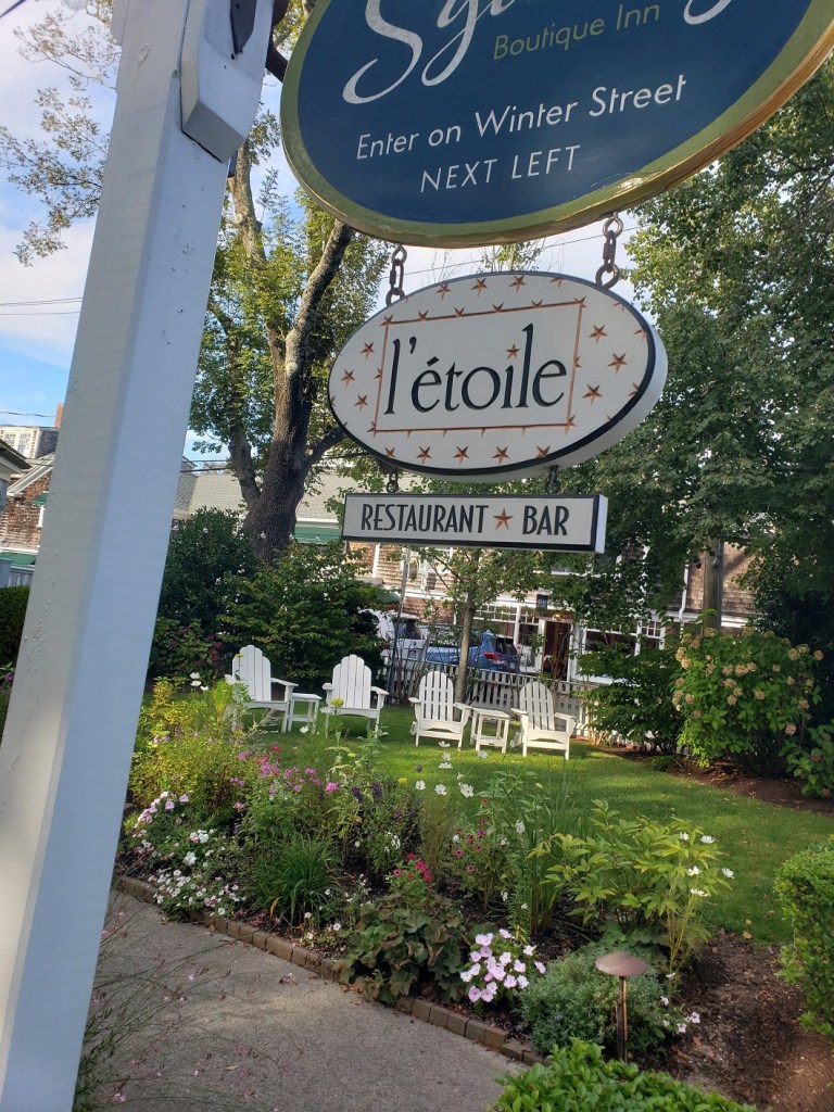 We arrived at our beautiful little Charlotte Inn, walked to The Black Dog to buy t-shirts, then back to the inn to drink Bristol Cream sherry and plan for our last dinner at L’etoile. Our dinner menu: duck fois gras, lobster etouvee, rack of lamb and fresh berries. The perfect end to a perfect day.