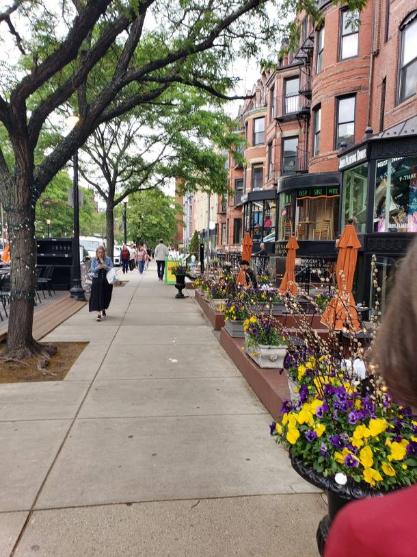 Everyone knows about Boston – it’s not a small town, but I love it; it has so many delightful streets dotted with churches, museums, restaurants and fascinating architecture. We found La Voile on this enchanting street, and loved sitting outside, drinking in the beauty.