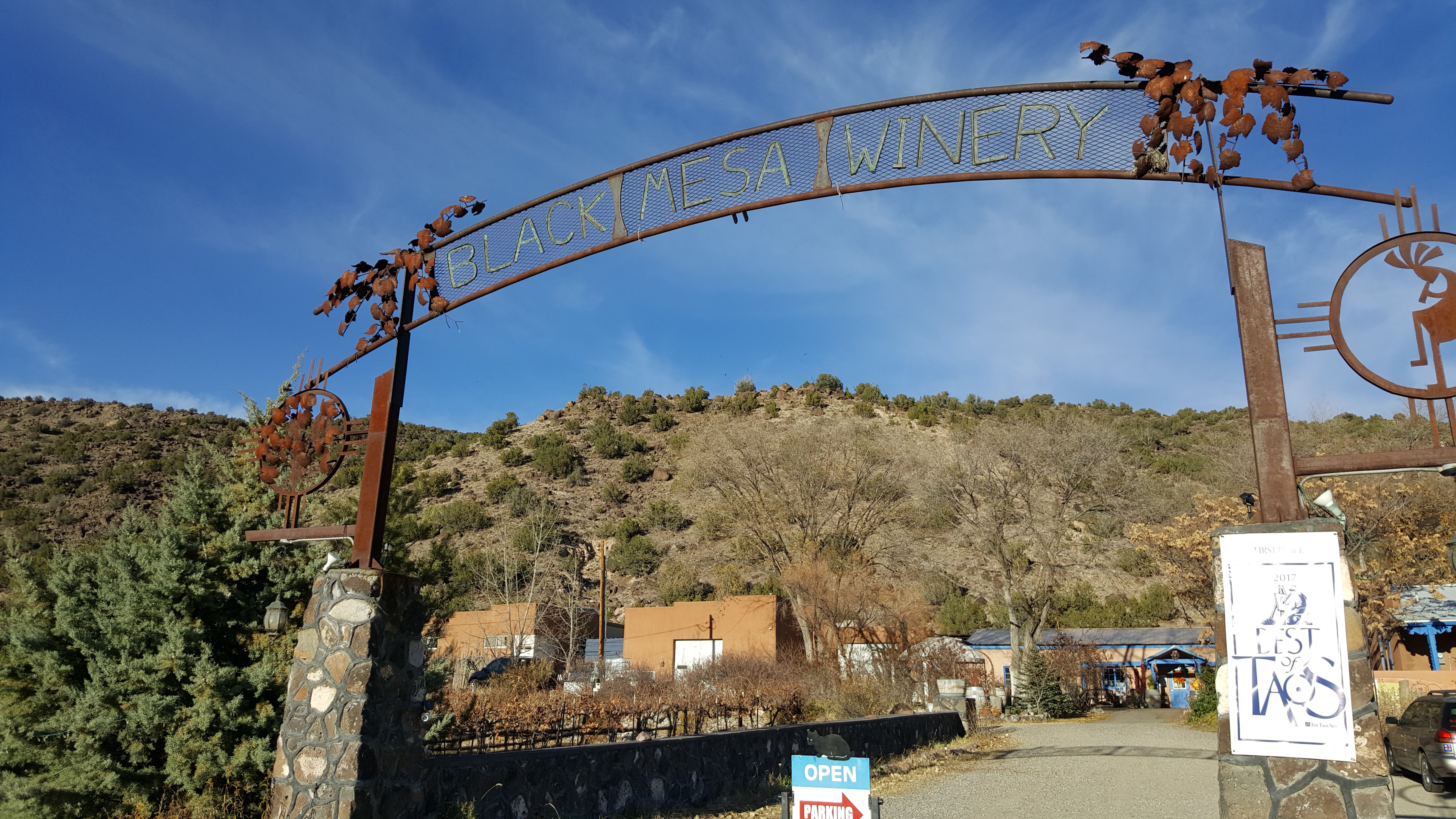 On the way into Taos, we found this wonderful tiny Black Mesa Winery, tucked beneath the mountains.