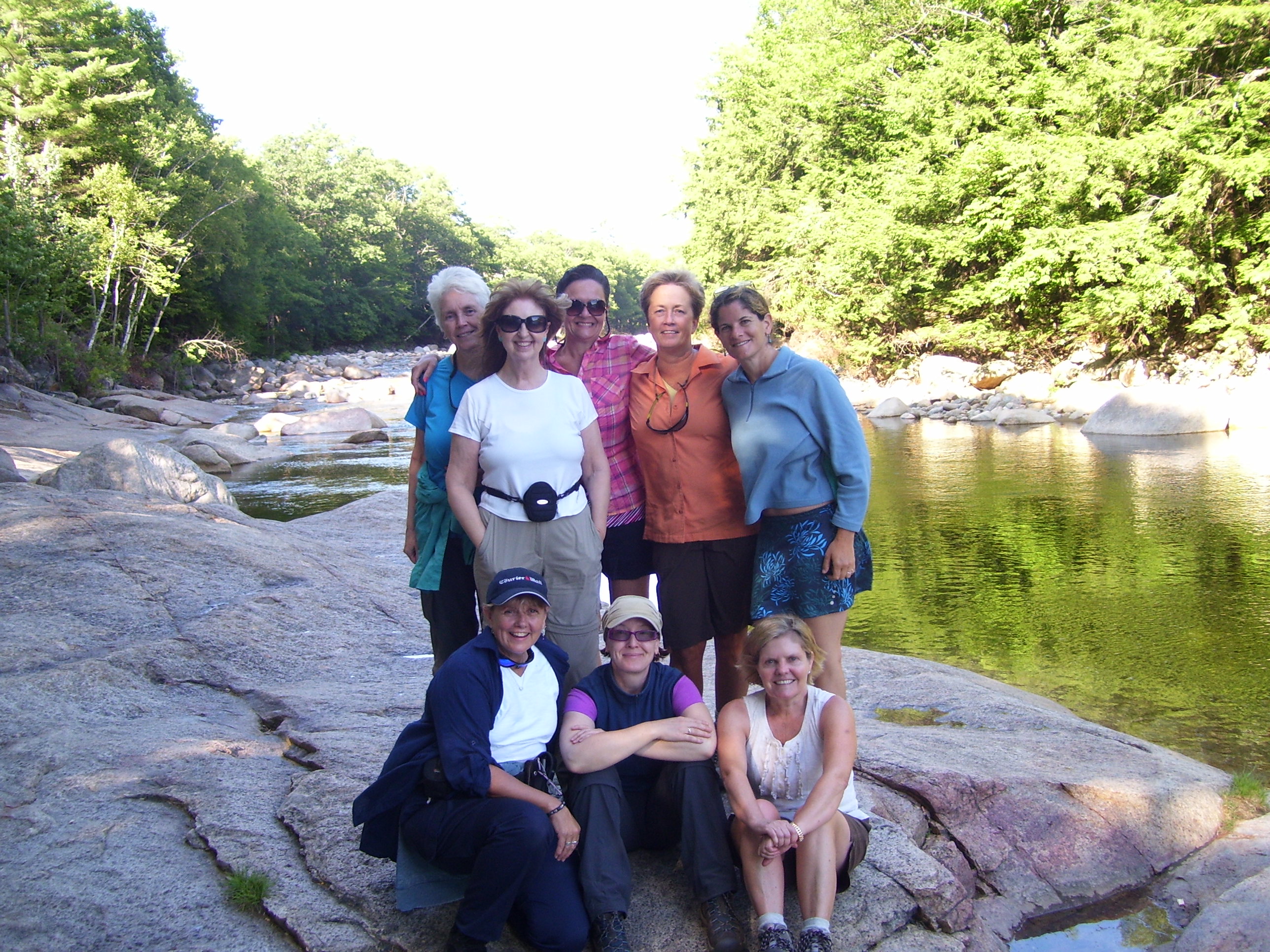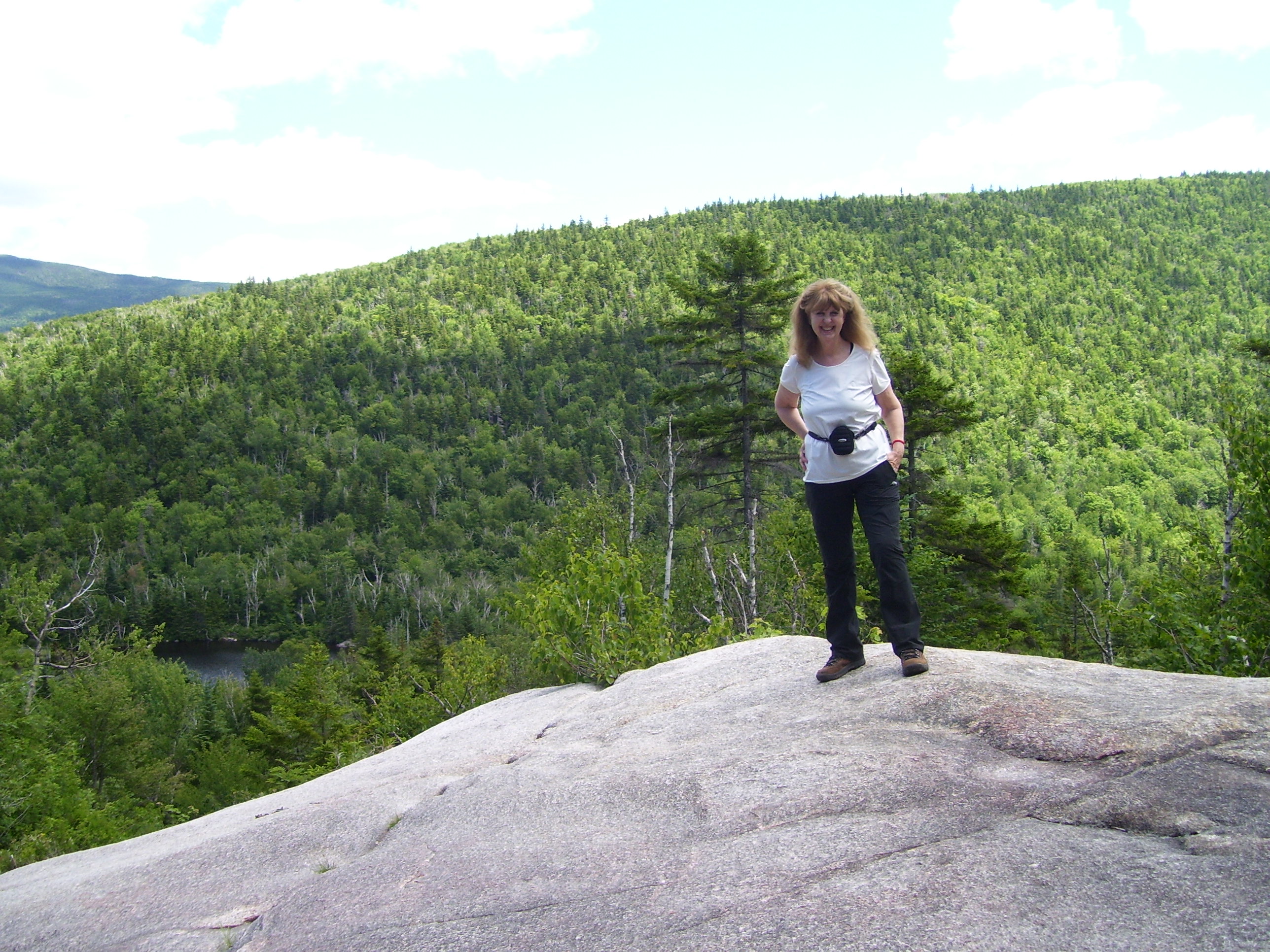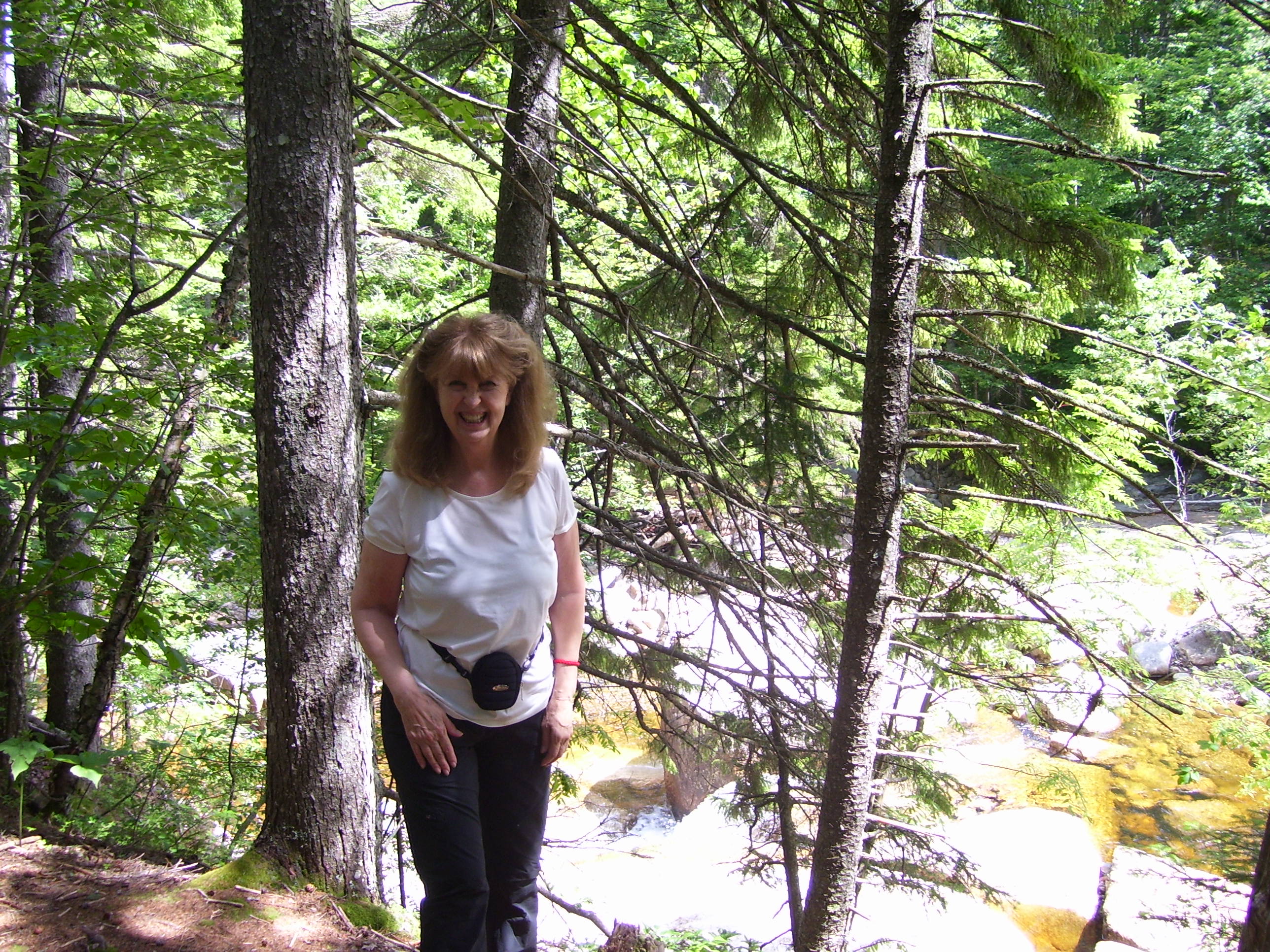 A really long day – up at 7 – breakfast at 8 – leave at 9. We all drive to the beginning of the hike 45 minutes away – only to find we’ve left Cindy behind at the condos!! Once it’s decided that she is NOT in the bathroom, or hiking on her own, Ruthie pops back in the van to go get her, and we all commence on our hike on the Zealand Falls trail. A glorious hike through forests and past marshes, alongside the Zealand River.  We see beaver dams, waterfalls, beautiful ponds, serene woods, blue sky, fluffy white clouds…manna for the soul.