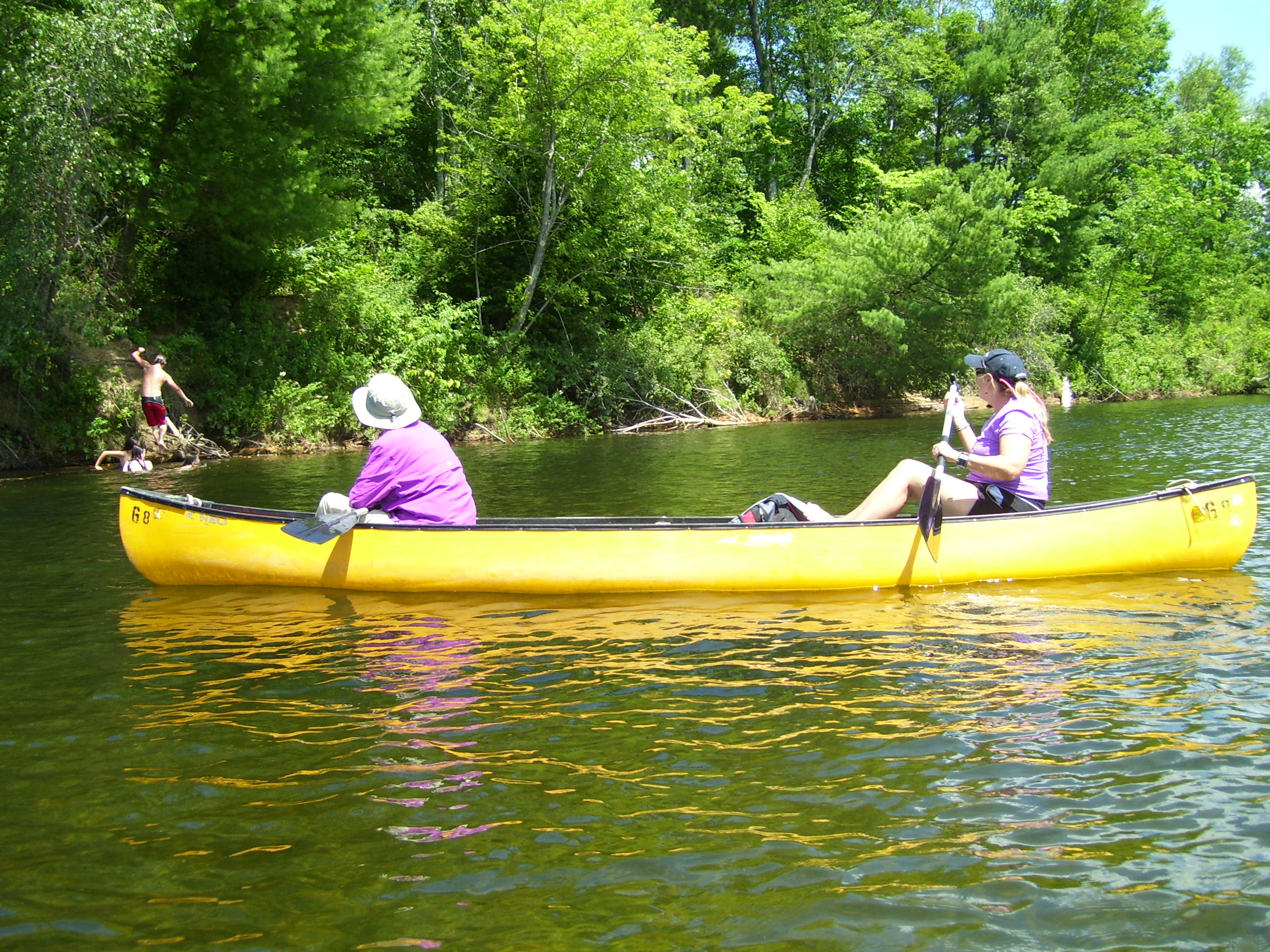 Good breakfast at 7:30 and we are out the door by 8:30, on the way to the Saco River for a day of canoe-ing and kayaking.  Four canoes are booked, two kayaks. Deb and I hope to partner in one of the canoes – NOT the greatest idea in the world, as we keep driving the canoe into sandbanks. So Deb and Jan exchange places, and we’re finally on our merry way.