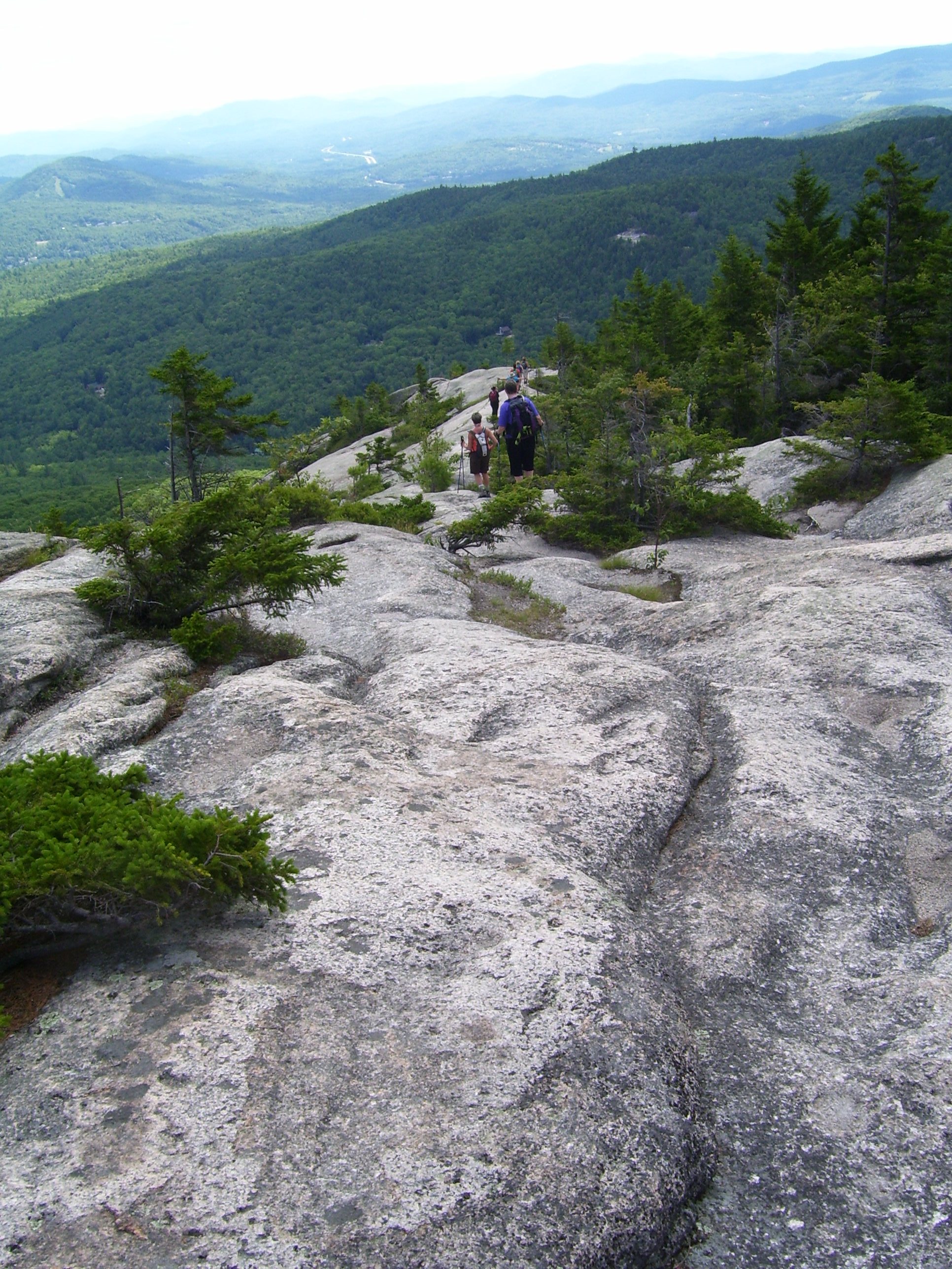 During this hike, we actually get onto the Appalachian Trail, and are hiking to one of the AMC huts which has an amazing view from the rocky crags surrounding the waterfall. The vistas all around us are breathtaking…so much green and blue, you want to kiss the ground for the pleasure of knowing these places still exist in the world.