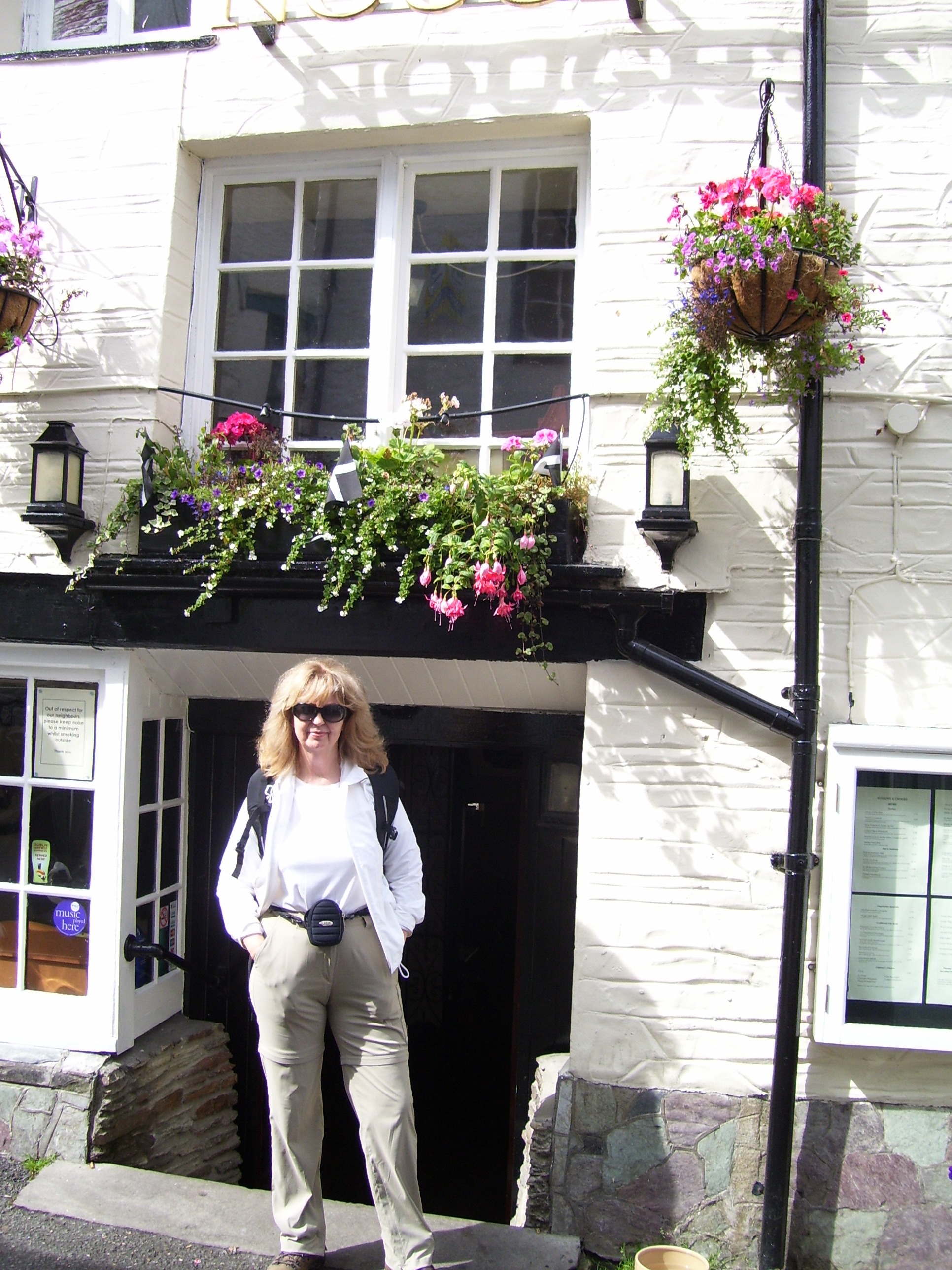 I had a banana in my backpack. Diane had grapes and a raisin scone. We wandered around Polperro, and I found the Noughts and Crosses Inn – still there after all these years! Jean and Toni (good friends of mine in Houston) honeymooned at this inn 60 years ago. We rambled around and window shopped, taking pictures of the harbor, the sun shining brightly on this attractive little fishing village.
