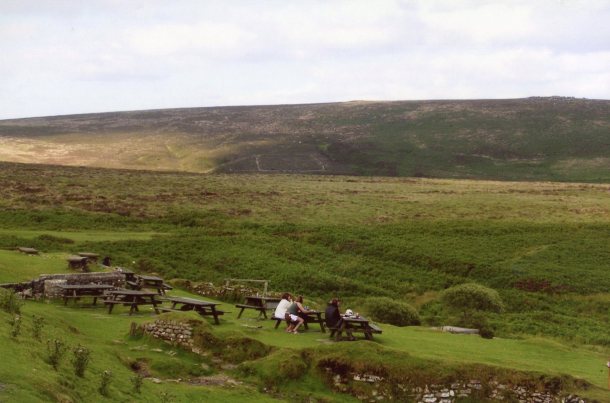 At the top of the world in the middle of nowhere on a road through Dartmoor stands the Warren Hill Inn. Here we stopped for a drink. It was a little cool out on the moors, so a wood fire was burning in the fireplace, and it was a true old-timey pub atmosphere, deep and dark. We chatted for a while with a man from Bath (incredibly crusty accent) who was looking at properties to buy for leasing to visitors. He was extremely friendly – took our pictures without a murmur.