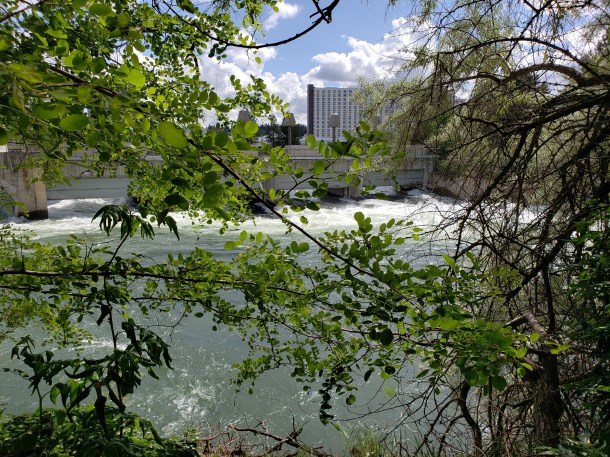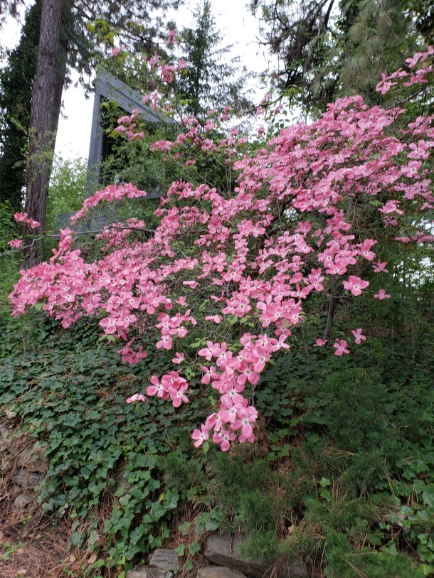 Spokane is just a beautiful town….the architecture is crisp and clean, everything looks as if it’s been scrubbed once a day. We walked the Spokane River pathway … the river was in full spate, and made a terrific noise under bridges, with whitewater horses jostling and sending up white sprays of foam.