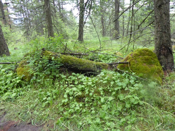 We hiked for about an hour, then the mosquitoes got to be too much, so we turned to come back. The day had started off fairly cool, and now was somewhat warmer, but not by much. But it was muggy as all get out!
