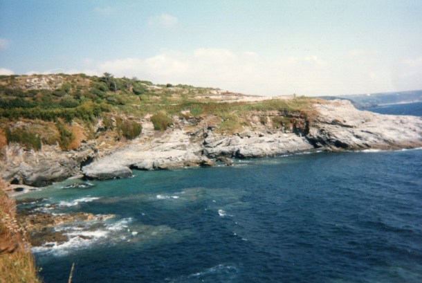 Allhays was a very lovely B&B off the beaten path <and I am very sorry to say it has since closed>. Situated on Talland Bay, between Looe and Polperro, its cream-colored stone glowed in the late afternoon light, and its bushes were heavy with hydrangeas surrounding it. The interior living room (for guests) had two lovely cream colored, soft chenille sofas, and the whole house had the French touch, with patterned draperies, beautiful pictures, and the woodwork painted in heavy high gloss cream. The carpet was cream bordering on ecru up the stairs. Annie, (one of our hosts, and French), had placed a fresh yellow rose in our lovely bedroom on the second story. The bedroom overlooked the lawn in back which led to the view of the cliffs and then the sparkling sea.
