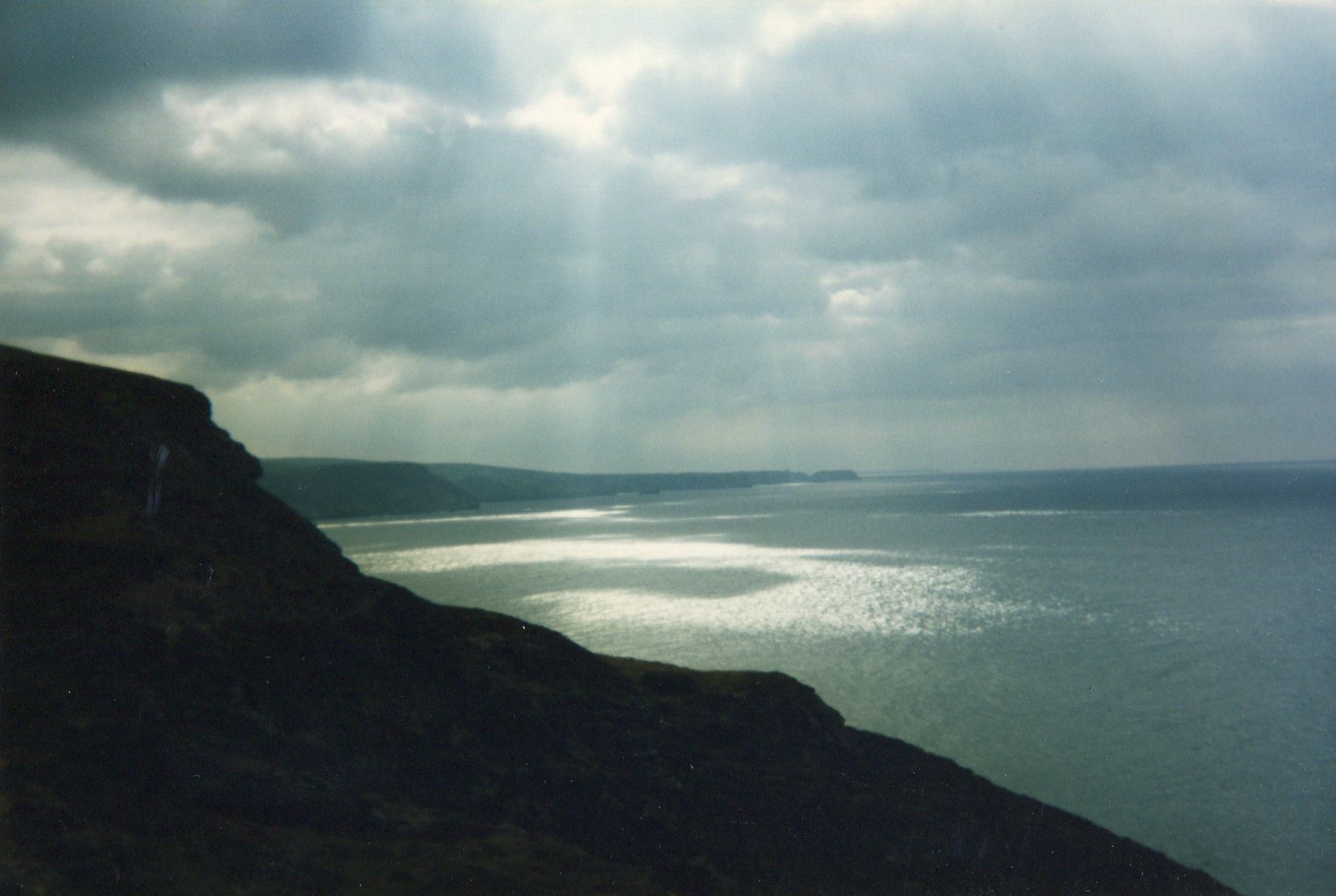 We walked narrow cliff paths rimmed with blackberry bushes, ferns and brambles; deep lanes lined high with hedgerows; past ancient churches; over fields and streams – the silver sea looked like a mirage –incredibly clear, incredibly beautiful under the sun, and stretching to the far blue horizon.