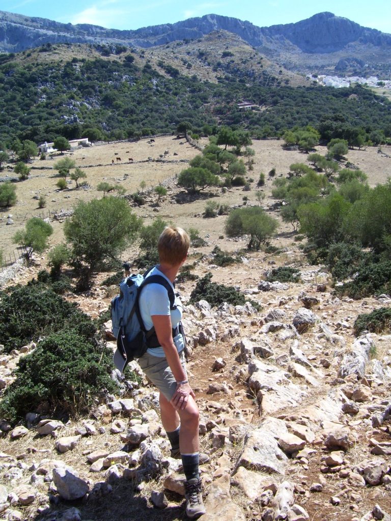 Our hike is not as strenuous today – mostly down, with a few uphills just to keep us on our toes. Views are incredible, as usual. We stop for lunch at 1PM. Didier says this is the most primitive part of Andalusia, and from all points of view he is right. We are at a small taverna where the construction workers come to eat lunch – the food is delish, and there’s lots of it – egg pies, crusty bread, salad, and lemon souffle for dessert. I am gaining weight as I write this down.