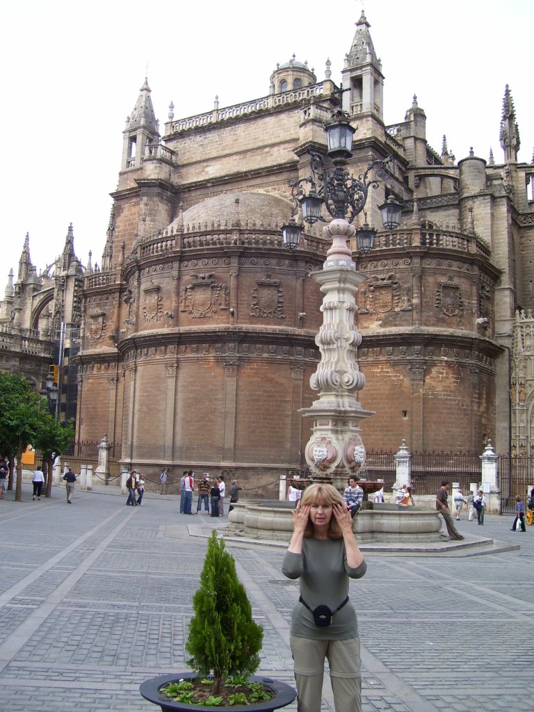 As scheduled, we leave the Hotel de la Villa at 8:30, and are on the 2-1/2 hour drive to Sevilla – first part through very mountainous and beautiful terrain, to a flatter but still rolling landscape into town. (Note: we have come to Sevilla from our highest elevation – 4500 feet.)
